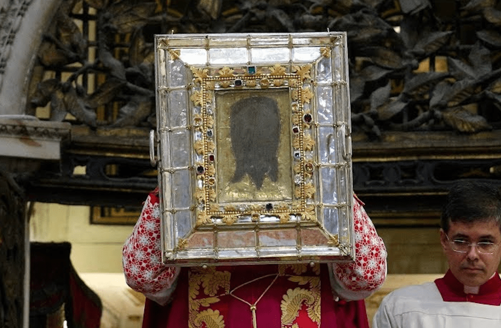 Relic example: the Veil of Veronica (cloth said to have wiped Christ’s face on the way to the crucifixion), Vatican version