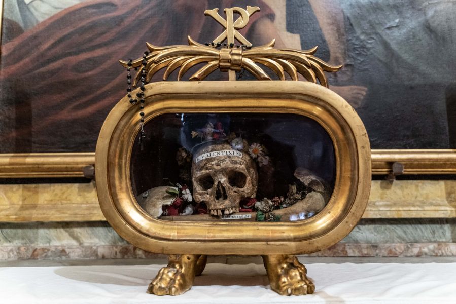 Relic example: the bones of St Valentine, Basilica of Santa Maria, Rome