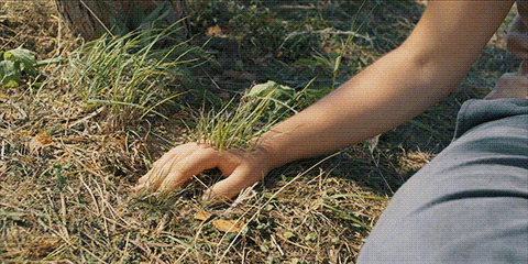 Grass growing from Dani’s hands and feet