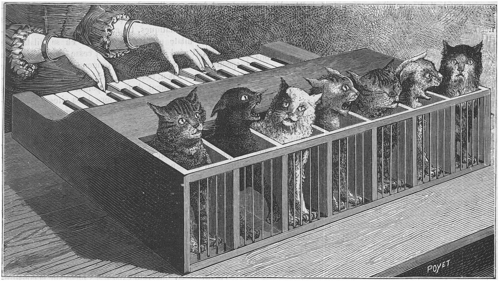 The cat piano (illustration from La Nature, 1883)