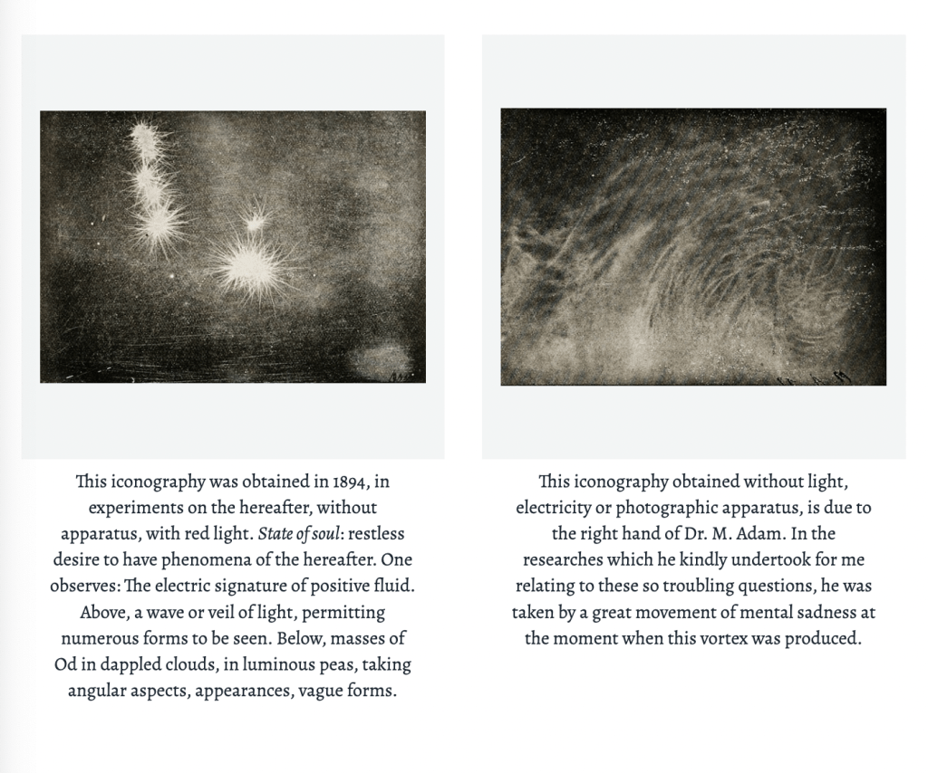 Hippolyte Baraduc, two cameraless photographs showing various feelings (‘restless desire to have phenomena of the hereafter’; ‘mental sadness’), 1894–1913
