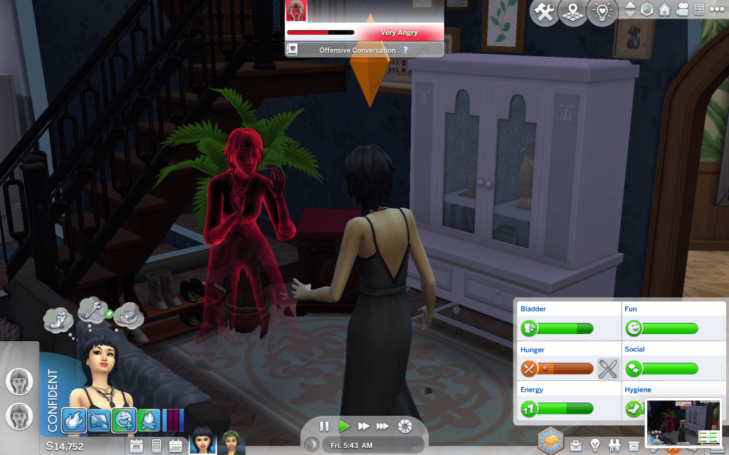Emma and Christy play The Sims 4 Paranormal ‘Stuff Pack’, exploring the game’s haunted house and séance aesthetics. We talk Victorian occult imaginaries, playing Sims as an emotional outlet, the promise of perfect capitalism, video games and affect, queer computer spaces, technopagans and cyber covens, and esoteric beliefs on the internet.