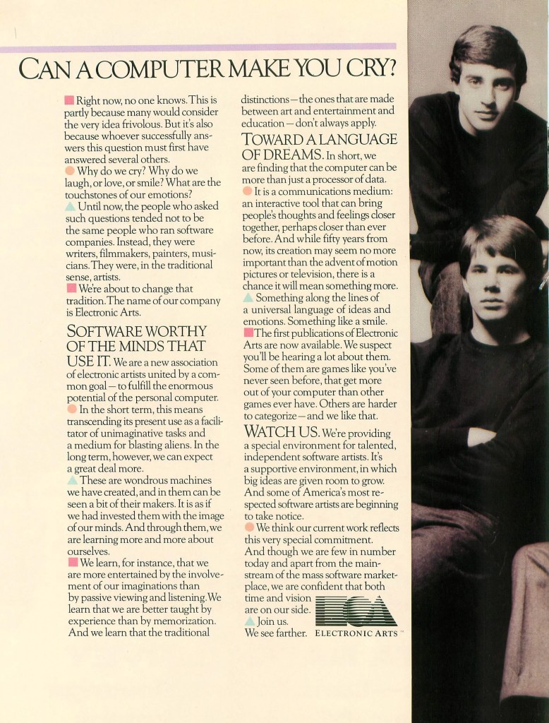 Electronic Arts, ‘Can a computer make you cry’ advertisement (1983)